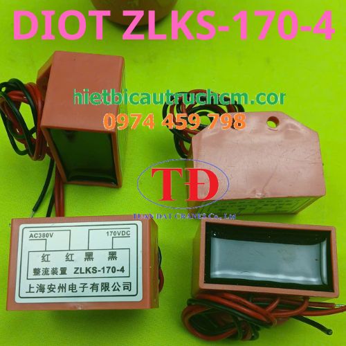 Diot thắng cầu trục vào 380v ra 170v ZlKS-170-4 là dùng để chỉnh lưu dòng điện xoay chiều 1P/380V/50Hz sang dòng điện 1 chiều DC 170V cho cuộn hút phanh để đóng mở phanh động cơ nâng hạ, di chuyển pa lăng, cầu trục, cổng trục.